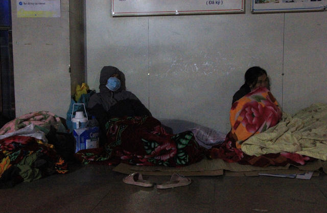 Trong cái rét tê tái đến cắt da cắt thịt, có những người phải nằm ngủ co ro dưới gốc cây, ghế đá hay dưới mái hiên trong đêm tại bệnh viện.
