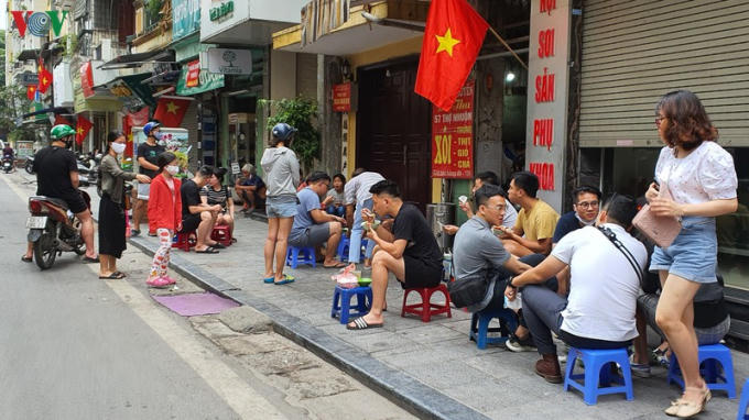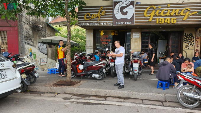 Một quán cafe trên đường Yên Phụ cho khách ngồi tràn ra ngoài vỉa hè./.