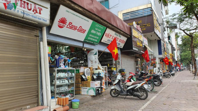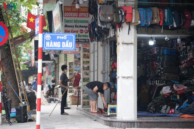 Một cửa hàng tại phố Hàng Dầu chấp hành chỉ thị mở cửa sau 9h sáng.