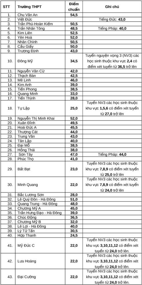 Hà Nội: 40 trong số 106 trường hạ điểm chuẩn vào lớp 10