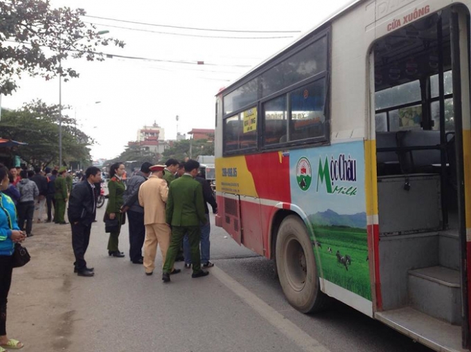 Tại hiện trường, chiếc xe buýt đã dừng lại bên đường sau khi xảy ra vụ việc, thi thể nữ sinh biến dạng, chiếc xe máy cách xe buýt khoảng gần 10m.