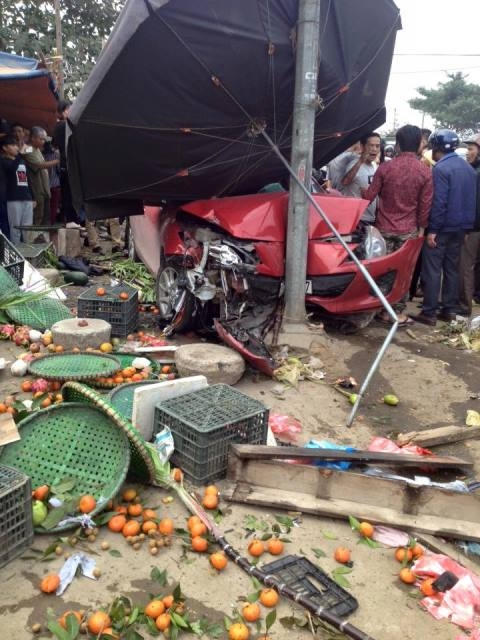 Theo người dân ở đây cho hay, vào khoảng thời gian trên, chiếc ô tô do phóng nhanh, tránh xe đi phía trước nên bất ngờ mất lái lao vào bên vệ đường nơi người dân đang tiến hành các hoạt động buôn bán nông sản, hoa quả...