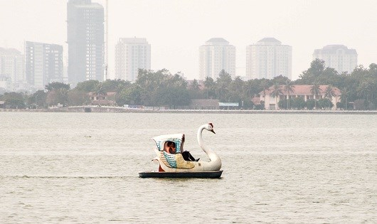 | Dịch vụ thuê thuyền đạp vịt vẫn diễn ra trên hồ Tây. |