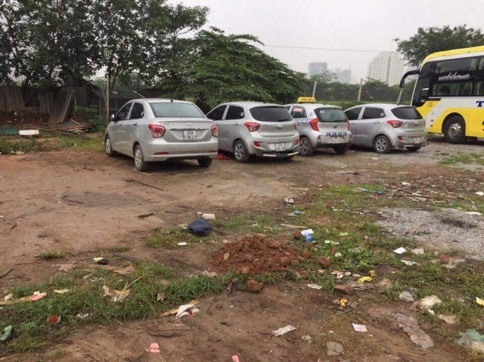 Tại thời điểm kiểm tra thực tế trong bãi trông xe “dù” này có các phương tiện ô tô loại 45 chỗ, xe taxi đang tập kết trong bãi.