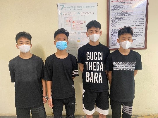 Trước đó, Công an phường Hàng Buồm tiếp nhận đơn trình báo của 2 người dân về việc bị mất xe máy tại số 19 Hàng Buồm. Ngay sau khi tiếp nhận vụ việc, Công an phường Hàng Buồm đã phối hợp Đội Cảnh sát hình sự Công an quận Hoàn Kiếm tiến hành xác minh điều tra và bắt giữ 04 đối tượng có liên quan gồm H.T.H (SN: 2008; trú tại: Phúc Tân, Hoàn Kiếm), T.V.A (SN: 2008; trú tại: Quỳnh Lôi, Hai Bà Trưng), P.K.C (SN: 2008; trú tại: Vĩnh Hưng, Hoàng Mai) và N.B.T (SN: 2006; trú tại: Vĩnh Hưng, Hoàng Mai).
