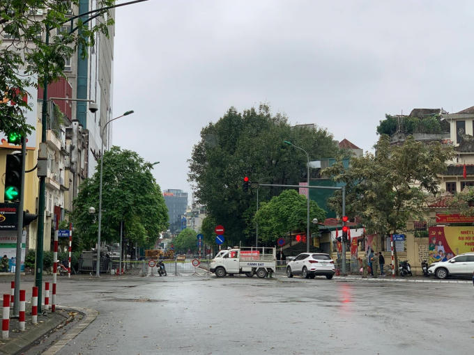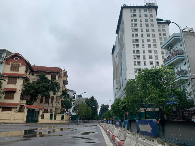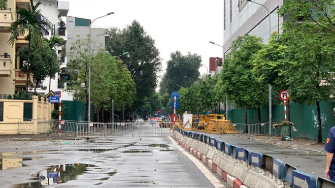 Theo ghi nhận phóng viên báo Tin tức, nhiều người dân lưu thông qua đây bất ngờ với việc tuyến đường khu vực tòa nhà 8B Lê Trực bị lực lượng chức năng rào chắn, cấm hoàn toàn phương tiện giao thông qua lại.