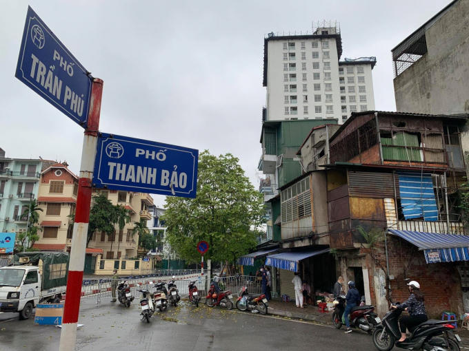 Sáng 23/4, đường Trần Phú (đoạn giao cắt với phố Thanh Bảo, dài khoảng 200m) đã được phong tỏa để lắp cẩu tháp, chuẩn bị cho việc phá dỡ giai đoạn 2 tòa nhà 8B Lê Trực.