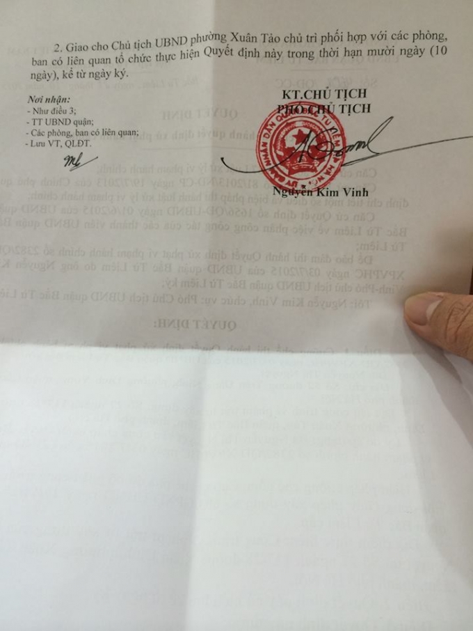 Quyết định được thực hiện trong vòng 10 ngày kể từ ngày ký. Thế nhưng đến thời điểm hiện tại đã hơn nửa năm trôi qua vẫn không nhận được bất kỳ động thái nào của các bên liên quan. Theo phản ánh của người dân, trên địa bàn phường Xuân Tảo việc xây dựng ở đây diễn ra rất hỗn loạn.