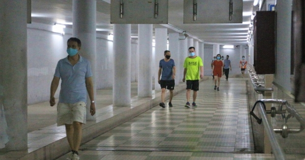 Sau khi TP Hà Nội quyết định tạm dừng các hoạt động tập thể dục, thể thao, các sự kiện tập trung đông người tại khu vực công cộng để phòng chống covid-19, nhiều người dân xuống hầm đi bộ tập thể dục.