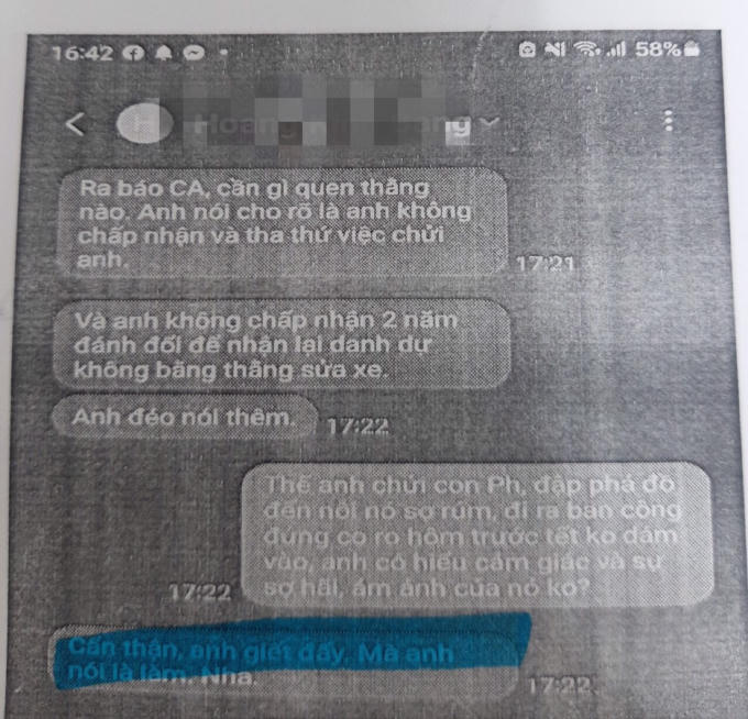 Bà M. liên tục nhận tin nhắn đe doạ xúc phạm, doạ giết của ông B.