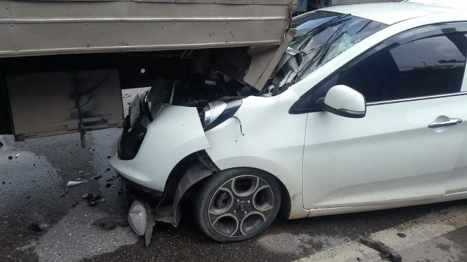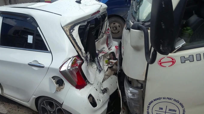 Theo quan sát của PV Pháp luật Plus, có 4 xe ô tô gặp nạn trong vụ tai nạn liên hoàn trên, hầu hết các xe bị móp méo sau vụ va chạm. Có hai xe loại 4 chỗ và hai xe tải. Trong đó, xe con 4 chỗ màu trắng bị hư hỏng nặng nhất, đầu và đuôi xe bị biến dạng hoàn toàn.