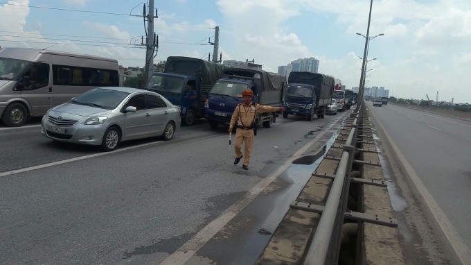 Sau vụ tai nạn, đội CSGT số 7 cũng đã có mặt để bảo vệ hiện trường cũng như phân luồng giao thông, cảnh báo cho các xe khác biết khi di chuyển qua hiện trường.