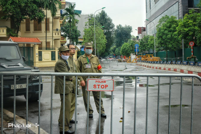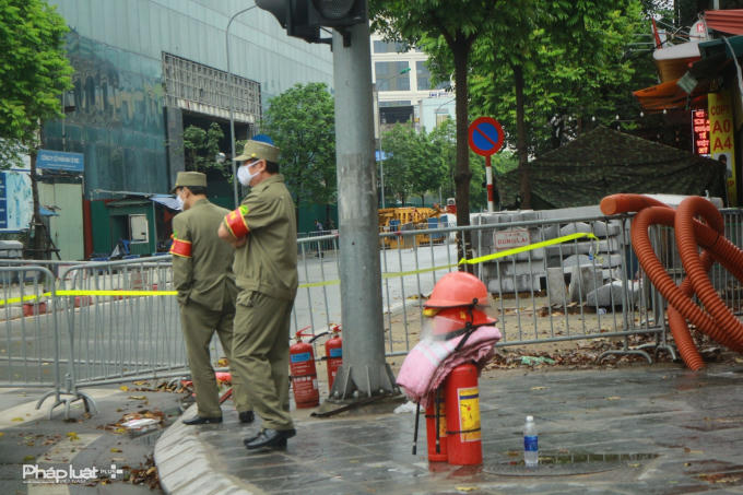 Lực lượng chức năng bắt đầu lập rào chắn chuẩn bị công tác tháo dỡ giai đoạn 2 dự án 8B Lê Trực, Ba Đình.
