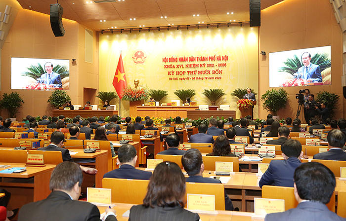Quang cảnh chương trình làm việc tại kỳ họp thứ 14, HĐND thành phố Hà Nội. Ảnh: https://hanoi.gov.vn/