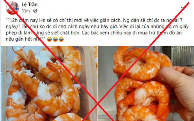 Ngày 2/8/2021, tài khoản Lệ Trần đăng tải trên mạng xã hội Facebook thông tin "12h đêm nay Hn sẽ có chỉ thị mới về việc giãn cách. Ng dân sẽ chỉ đc ra ngoài 7 ngày/1 lần chứ ko dc đi chợ cách ngày như bây giờ. Việc đi lại của những ng có giấy phép đi làm cũng sẽ siết chặt hơn. Các bác xem chiều nay đi mua trữ thêm đồ ăn nếu gần hết nhé".