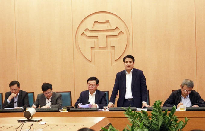 Chủ tịch UBND TP Hà Nội Nguyễn Đức Chung tại cuộc họp.