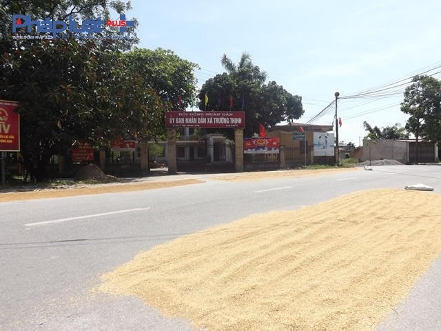 Ngay từ khu vực Cầu Lão (xã Trường Thịnh), đoạn ngã 3 tiếp giáp với quốc lộ 21B, thóc lúa được phơi la liệt trên mặt đường. Để đảm bảo an toàn cho sân phơi của mình, nhiều bà con đã dùng các vật dụng như thanh gỗ, gạch, đá để lập hàng rào không cho các phương tiện xâm phạm.