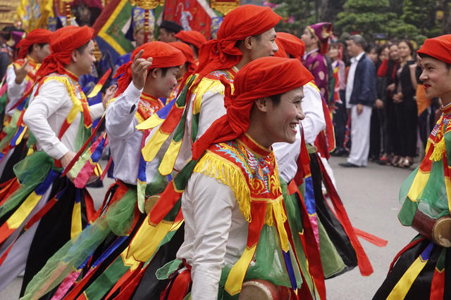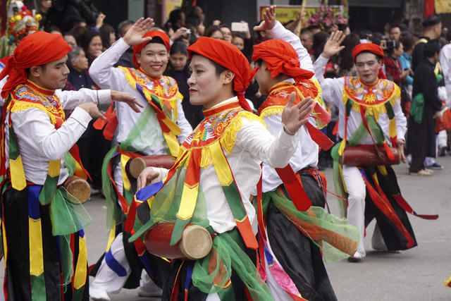 Lễ hội làng Triều Khúc là sự tưởng nhớ công lao của dân làng với Bố cái Đại vương Phùng Hưng và ông Vũ Đức Úy, người đã truyền dạy nghề dệt cho dân làng. Trong đám rước có nhiều trò vui, điệu múa "đĩ đánh bồng" được xem như trò diễn hấp dẫn nhất. Dưới đây là những hình ảnh chi tiết về điệu múa kì lạ này.