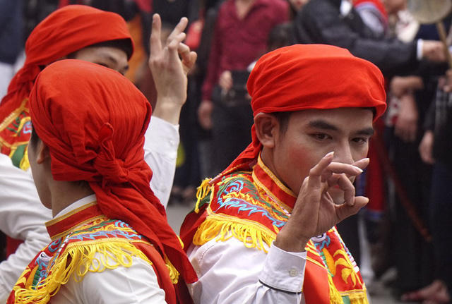 Những chàng trai làng Triều Khúc lả lơi trong màn "con đĩ đánh bồng" độc đáo