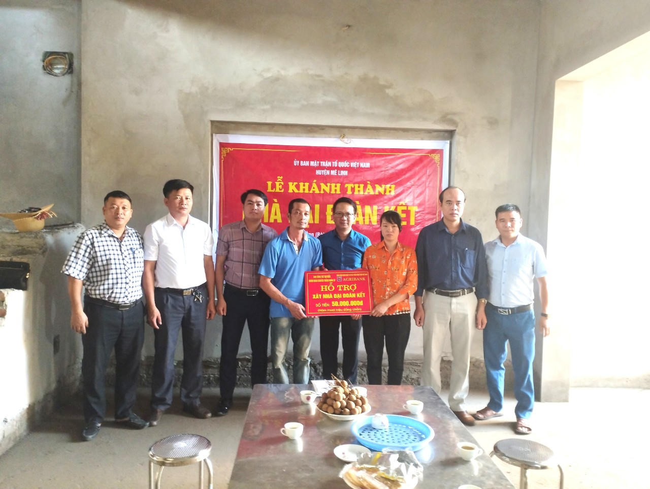 Ủy ban MTTQ Việt Nam huyện Mê Linh trao kinh phí hỗ trợ xây dựng nhà Đại đoàn kết tại xã Tam Đồng. (Ảnh: MTTQ Hà Nội)