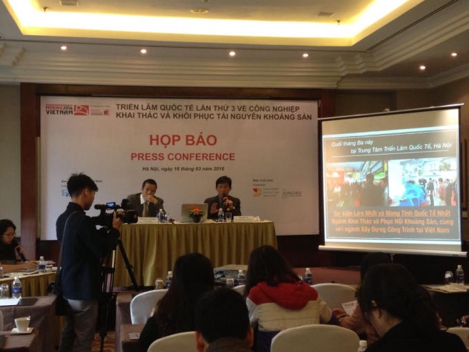 Ngày 16/3, Ban tổ chức MINING VIETNAM 2016 – Phiên bản lần thứ 3 của triển lãm quốc tế về ngành khai thác và phục hồi khoáng sản Việt Nam – đã tổ chức họp báo giới thiệu về triển lãm.