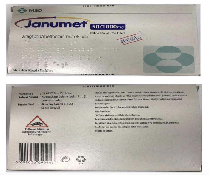 Janumet 50/1000mg (Sitagliptin/Metformin) – điều trị tiểu đường, số lô 24497505A, hạn dùng 07/2026.