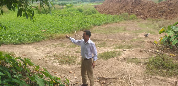 Ông Hoàng Văn Thảo chỉ phần đất nhà bà Huê và ông khẳng định ông không lấn chiếm đất, vì đất của ông đã sử dụng từ hàng chục năm trước.