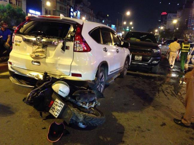 Ngay sau đó, một chiếc xe hiệu SH mang BKS: 29G1 43659 đi sau không kịp phản ứng đã đâm mạnh phía đằng sau xe CRV.