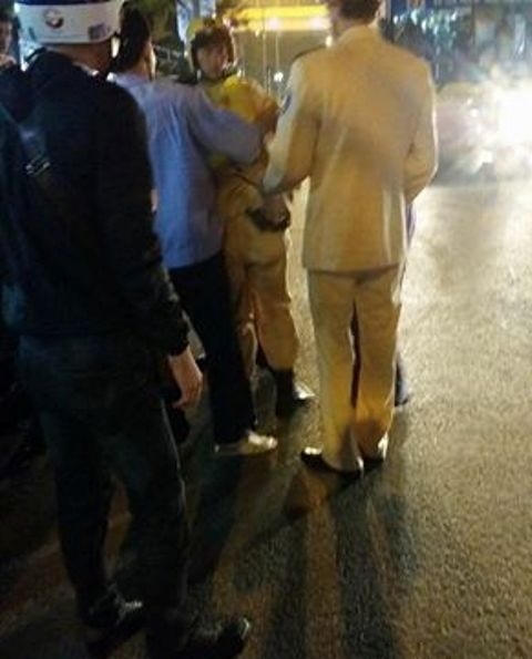 Do va chạm quá mạnh đã khiến đồng chí CSGT này bị thương và được đồng đội, người dân quanh khu vực đưa đi cấp cứu.