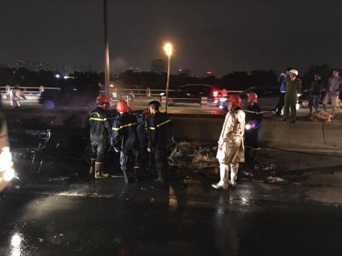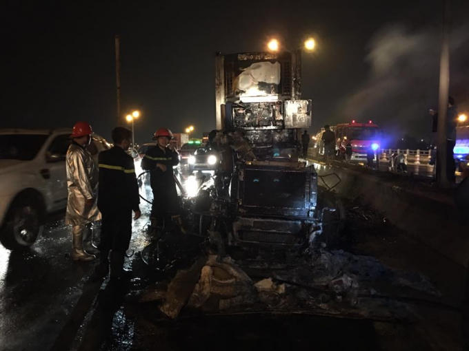 Theo một số nhân chứng cho biết, vào khoảng thời gian trên, chiếc container mang BKS-51R 015.28 di chuyển hướng Hà Nội - Bắc Ninh khi đến giữa cầu thì bốc cháy dữ dội ở phần đầu xe.