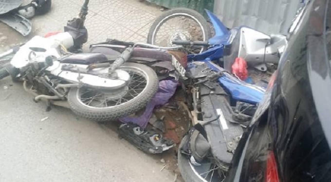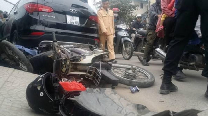 Theo một số nhân chứng có mặt tại hiện trường cho hay, vào thời gian và địa điểm nói trên, chiếc xe ô tô hiệu Santafe đang đi trên đường thì mất lái, đâm vào hàng loạt xe máy và một chiếc taxi.