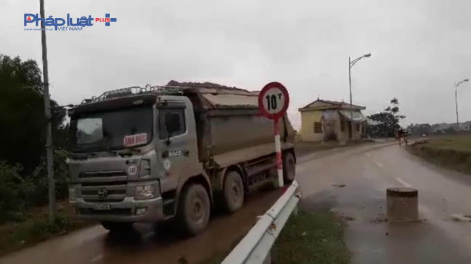 Clip ghi lại cảnh xe quá tải trọng đường trên tuyến đê Đồng Quang huyện Quốc Oai.
