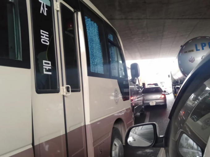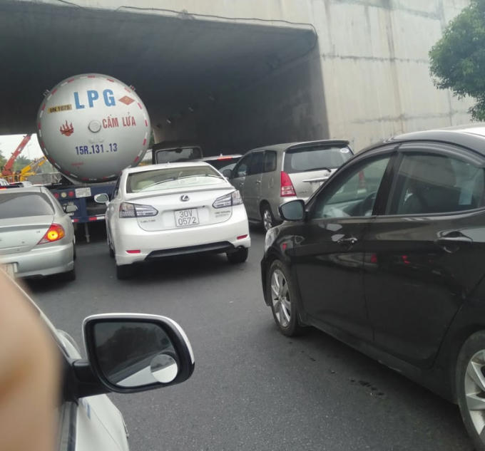 Vụ tai nạn đã làm tuyến giao thông Nội Bài về trung tâm thành phố ùn tắc nhiều giờ.