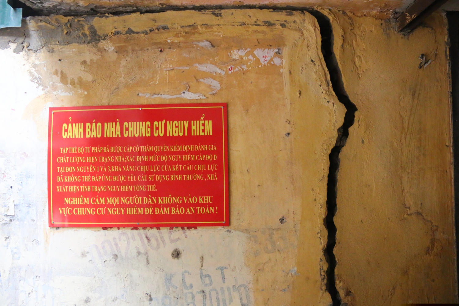 Cảnh báo nguy hiểm tại một chung cư ở Hà Nội.