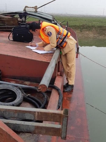 Theo đó, vào lúc 2 giờ sáng ngày 25/1, tại ngã ba sông Lam (thuộc thôn Đại Châu, xã Đức Châu, huyện Đức Thọ, Hà Tĩnh). Tổ công tác Thủy đội 1 (PC68) đã mật phục bắt quả tang 1 Sà lan số đăng ký HT1062 đang có hành vi khai thác cát trái phép.