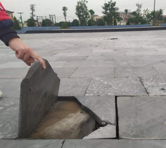 Nền đá bong, lóc thành mảng.