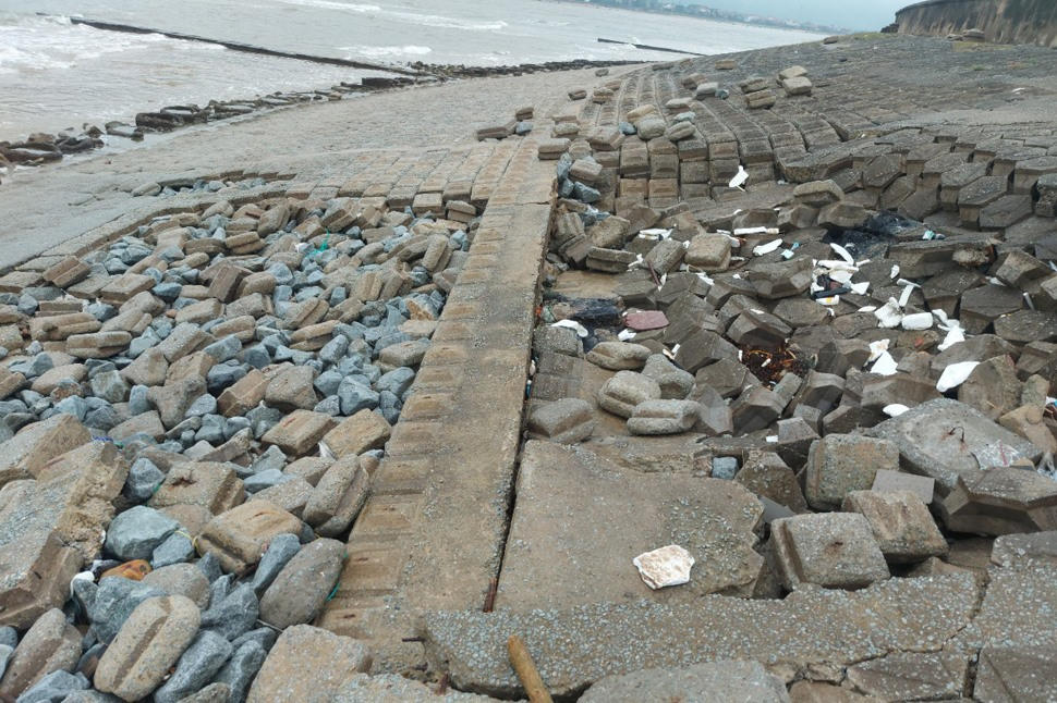 Quy mô dự án khắc phục, sửa chữa một phần mái tuyến kè đê biển Cẩm Nhượng với tổng chiều dài là 1.148m...