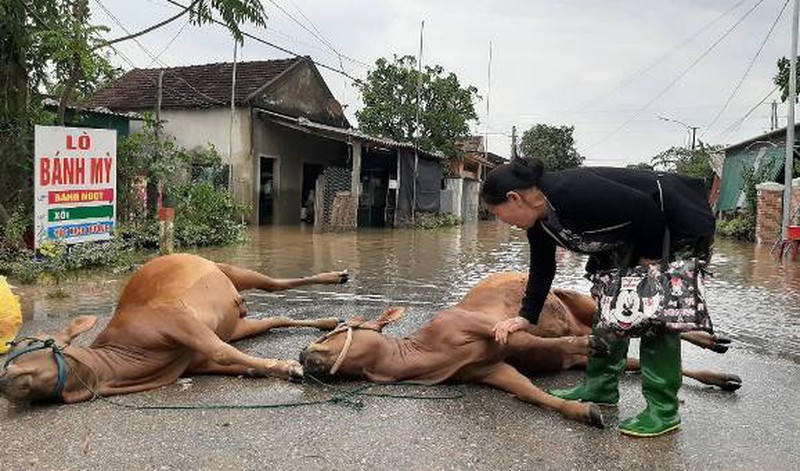 Người dân huyện Cẩm Xuyên bị thiệt hại nặng, gia súc chết sau lũ.