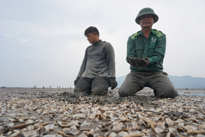 Ông Lê Văn Thuận xót xa: Ngao bị gần như toàn bộ, gia đình tôi thiệt hại gần 1 tỉ đồng. Hai ngày vừa qua, tôi phải bỏ tiền thuê người dân ra thu gom xác ngao chết đem đổ và thu hoạch số ngao còn lại để vớt vát lại phần nào.