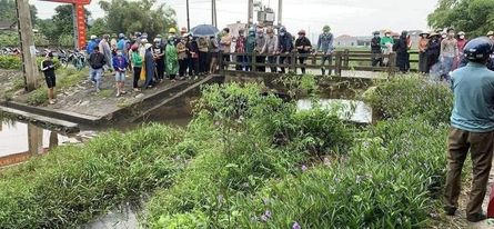 Tại hiện trường, chiếc xe máy BKS 70H5-7382 nằm mắc kẹt dưới mương nước, bị hư hỏng nặng phần đầu. Trong khi đó nạn nhân tử vong nằm trên thành cầu cách vị trí xe khoảng 2m.