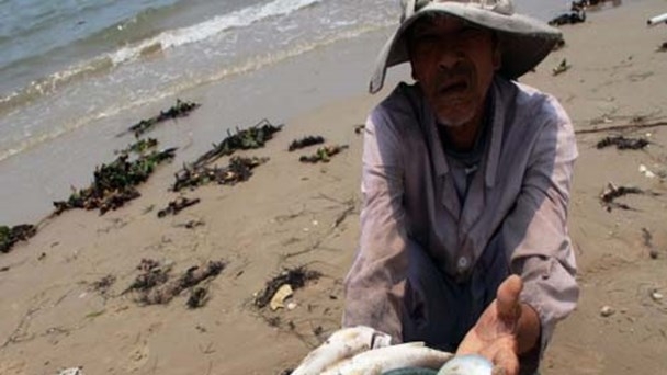 | Mỗi ngày, ngư dân Hà Tĩnh vớt được hàng tấn cá chết dạt bào bờ. |