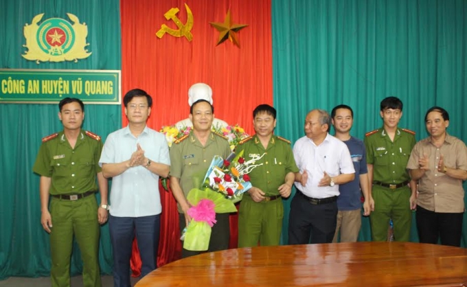 Sáng 7/4, UBND huyện Vũ Quang (Hà Tĩnh) đã biểu dương, thưởng nóng 5 triệu đồng cho cán bộ, chiến sĩ Công an huyện về thành tích vụ bắt 3 đối tượng cướp tài sản của tài xế taxi.