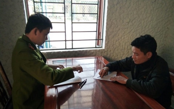 | Đối tượng Nguyễn Văn Quang tại cơ quan công an. |
