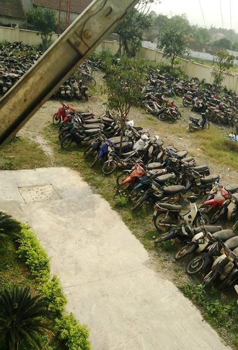 | Khoảng 250 chiếc xe vi phạm đang "chịu trận" trong khuôn viên Công an Thị xã Kỳ Anh. |