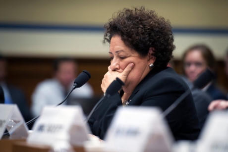 Bà Katherine Archuleta, giám đốc Văn phòng quản lý nhân sự (OPM) bất lực trước những truy vấn trong buổi điều trần trước quốc hội hồi tháng 6/2015 về những biện pháp an ninh mạng yếu kém. Ảnh: AP