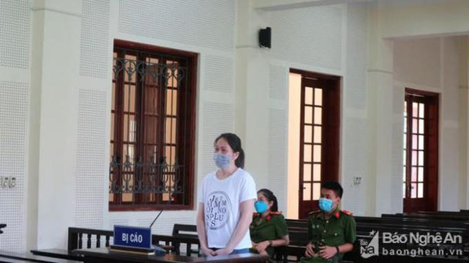 Bị cáo Vi Thị Nga khóc lóc suốt buổi xét xử. (Ảnh: báo Nghệ An)