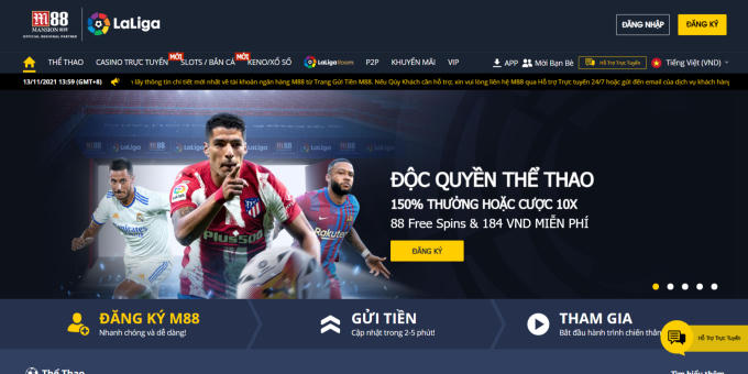 Hình ảnh trang chủ của sàn tổ chức đánh bạc và cá cược bóng đá M88.