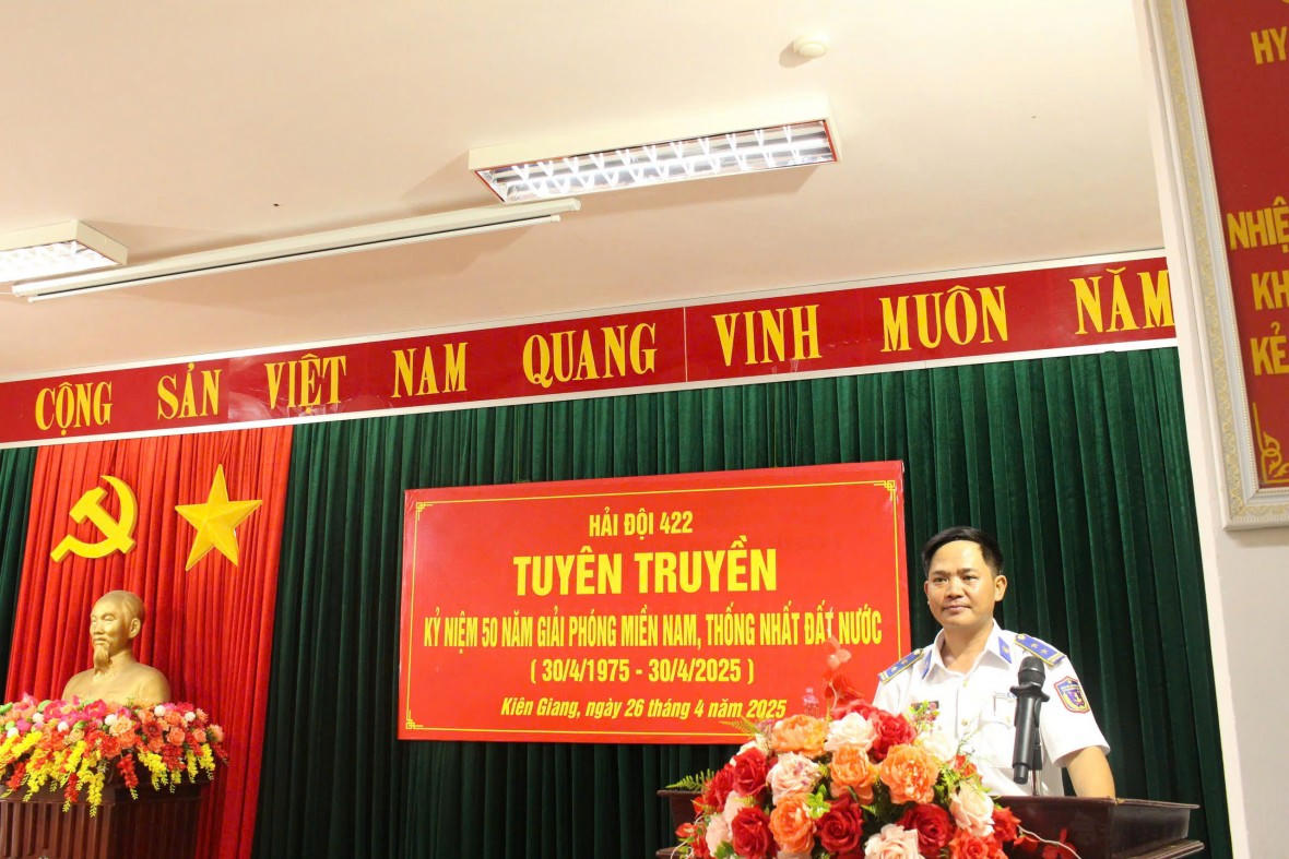 Chiều ngày 26/4/2025, tại Thành phố Phú Quốc, Hải đội 422, Hải đoàn 42, Bộ Tư lệnh Vùng CSB 4 phối hợp với trường Tiểu học & Trung học Cơ sở Hàm Ninh tổ chức các hoạt động ý nghĩa, thiết thực chào mừng kỷ niệm 50 năm Ngày Giải phóng Miền Nam, thống nhất Đất nước cho hơn 300 giáo viên, học sinh.