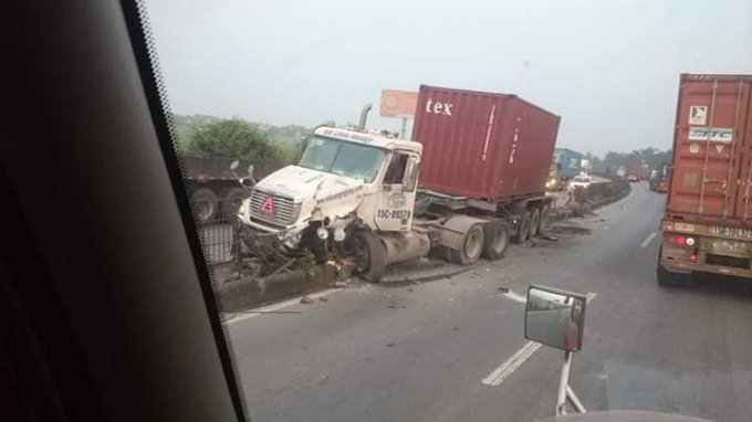 Vụ va chạm khiến xe đầu kéo (chưa xác định được BKS) lao vào cổng công ty đóng tàu Hoàng Gia và bị cháy khiến tài xế tử vong trong cabin. Chiếc xe đầu kéo BKS: 15C - 097.39 kéo theo romooc BKS: 15R - 126.23 đâm vào giải phân cách giữa đường và bị hư hỏng nặng.