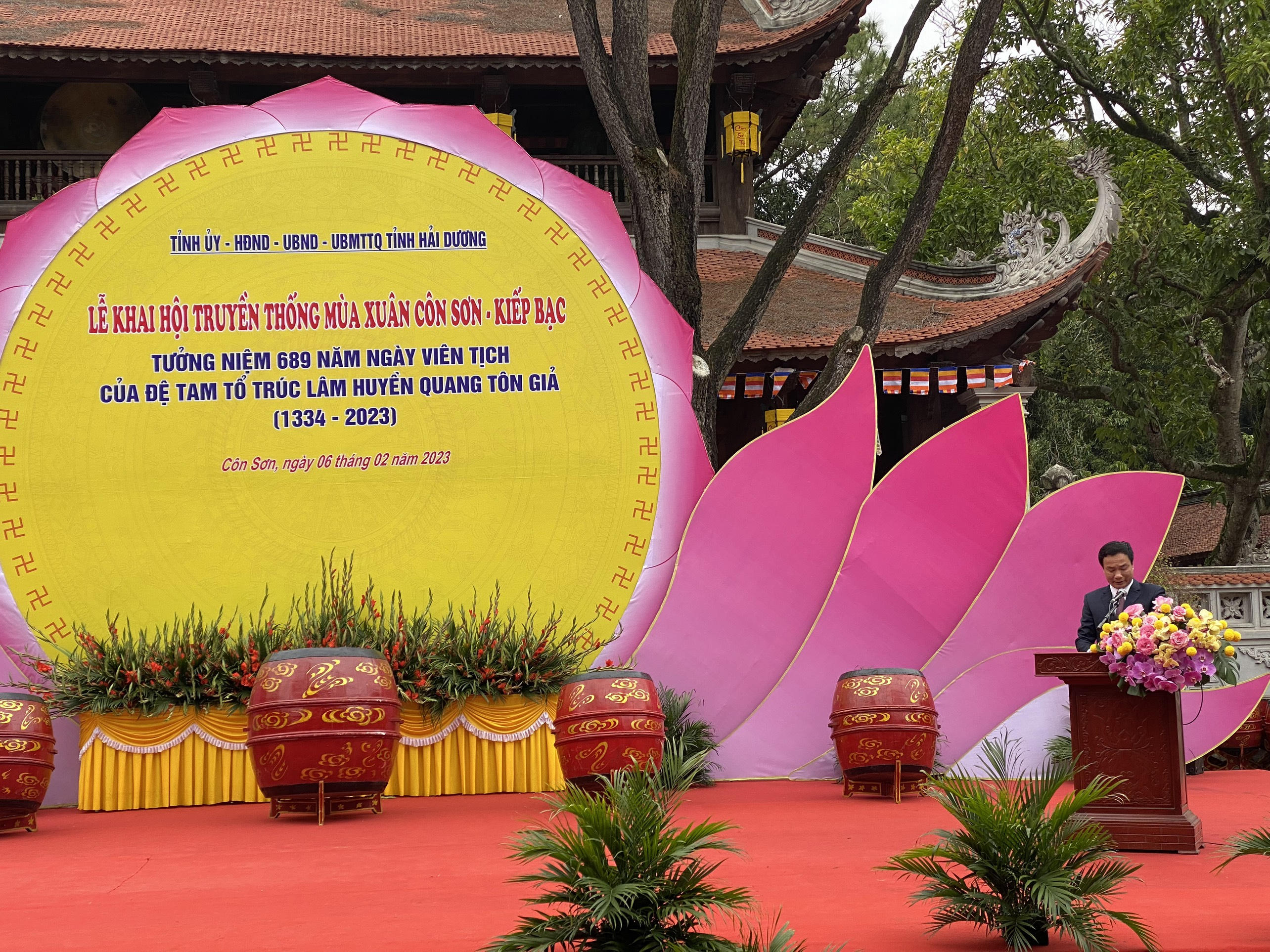 Phát biểu tại Lễ khai hội, Chủ tịch UBND tỉnh Hải Dương Triệu Thế Hùng cho biết, gần 7 thế kỷ qua, những giá trị di sản văn hóa ở Côn Sơn đã góp phần làm nên nét văn hóa đặc sắc, đa dạng không chỉ của riêng vùng đất Hải Dương mà trở thành dòng chảy liên tục “hội tụ, kết tinh và lan tỏa” bằng sức sống văn hóa, bằng tâm nguyện của hàng triệu triệu đồng bào Việt Nam. Và rồi từ đây, tinh thần ấy, ý chí ấy lại lan tỏa, ăn sâu vào tâm thức mỗi gia đình, mỗi người dân yêu nước, với tấm lòng hướng thiện, có vị thế quan trọng trong kho tàng di sản văn hóa Việt Nam.